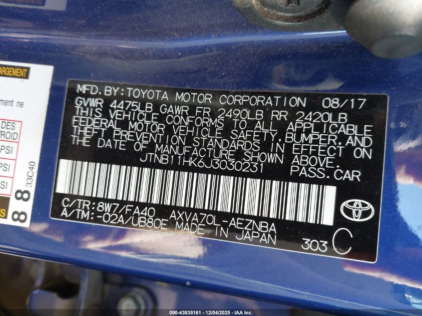 Цвет СинийЦилиндры 4Привод Передний приводVIN JTNB11HK6J3030231Состояние Заводится и едет (проверено)Повреждения Задняя правая AutoRIA