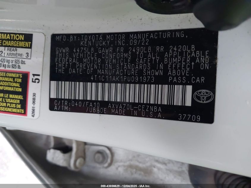 2023 TOYOTA CAMRY 2023 року Бензин, 2.5, Передний привод, vin - 4T1C11AK1PU091973 из США