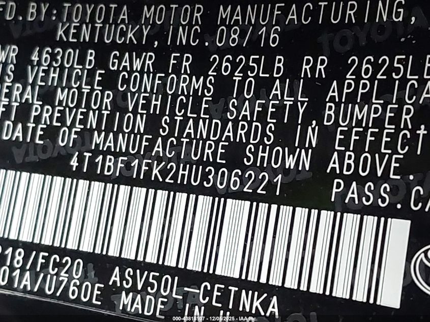 2017 TOYOTA CAMRY LE