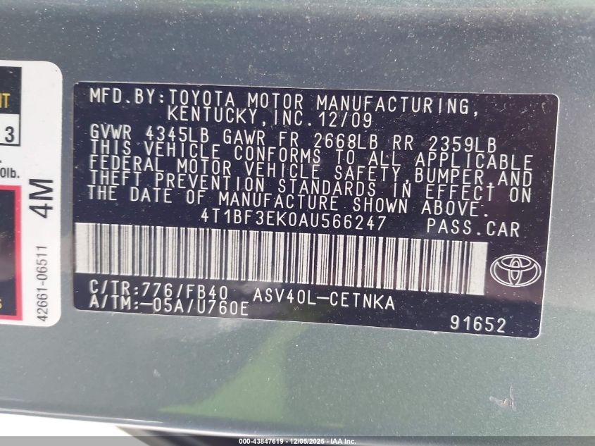 2010 TOYOTA CAMRY 2010 року Бензин, 2.5, Передний привод, vin - 4T1BF3EK0AU566247 из США