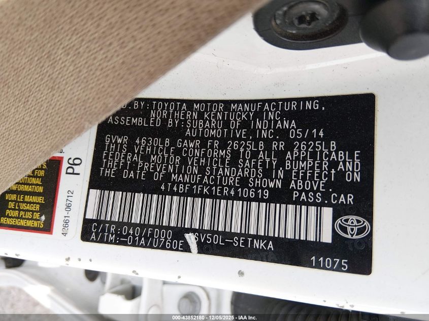 2014 TOYOTA CAMRY 2014 року Бензин, 2.5, Передний привод, vin - 4T4BF1FK1ER410619 из США