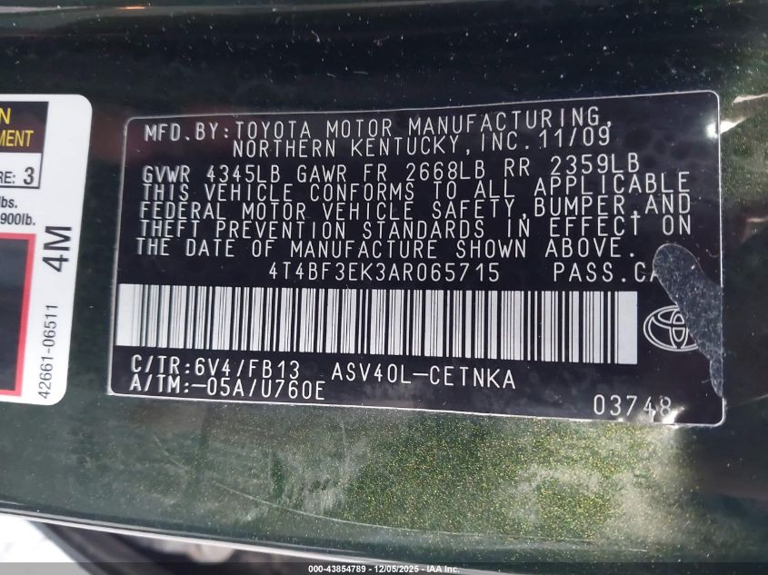 2010 TOYOTA CAMRY 2010 року Бензин, 2.5, Передний привод, vin - 4T4BF3EK3AR065715 из США
