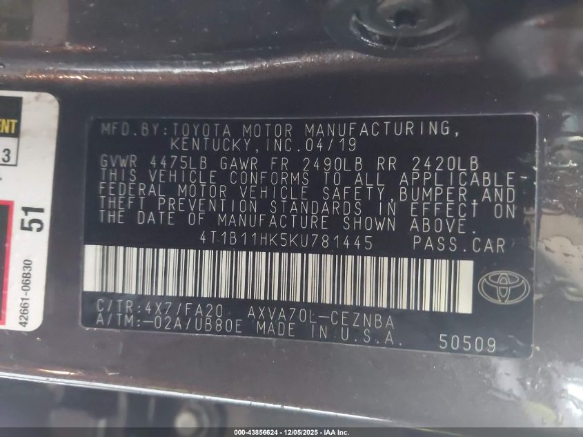 2019 TOYOTA CAMRY 2019 року Бензин, 2.5, Передний привод, vin - 4T1B11HK5KU781445 из США