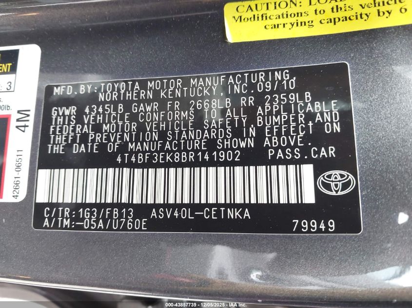 Цвет СерыйЦилиндры 4Привод Передний приводVIN 4T4BF3EK8BR141902Состояние СтационарноПовреждения Передняя или задняя AutoRIA