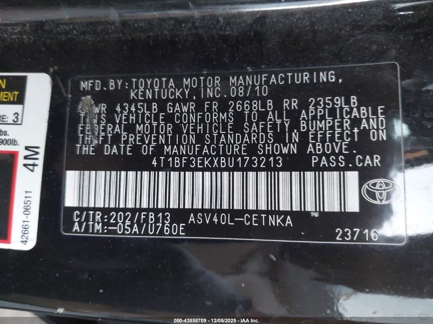 2011 TOYOTA CAMRY BASE