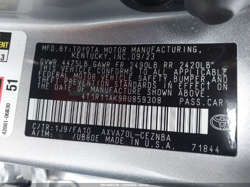2024 TOYOTA CAMRY 2024 року Бензин, 2.5, Передний привод, vin - 4T1R11AK9RU859308 из США