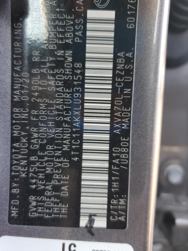 2020 TOYOTA CAMRY 2020 року Бензин, 2.5, , vin - 4T1C11AKXLU931548 из США