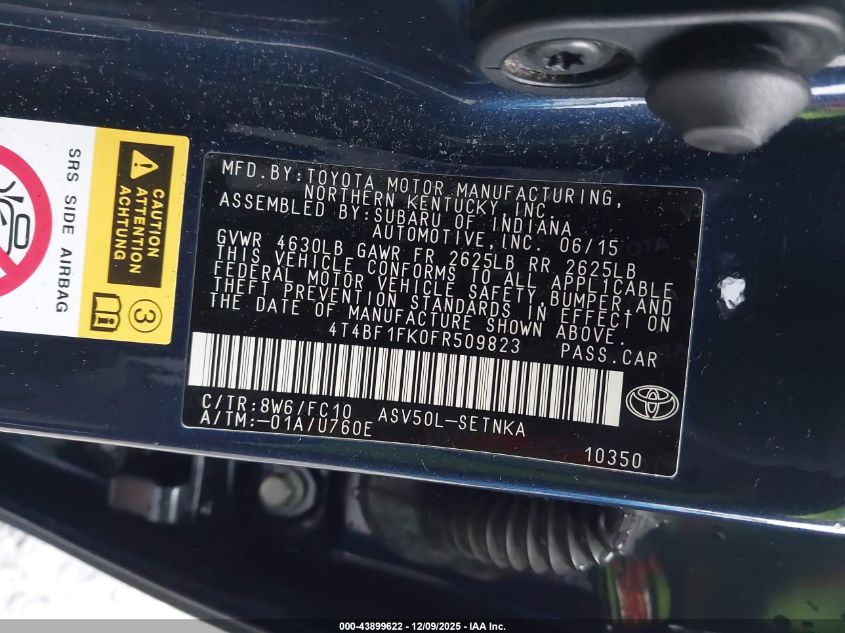 2015 TOYOTA CAMRY 2015 року Бензин, 2.5, Передний привод, vin - 4T4BF1FK0FR509823 из США