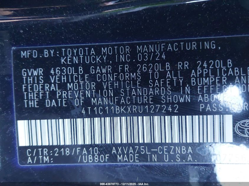 2024 TOYOTA CAMRY 2024 року Бензин, 2.5, Полный привод, vin - 4T1C11BKXRU127242 из США
