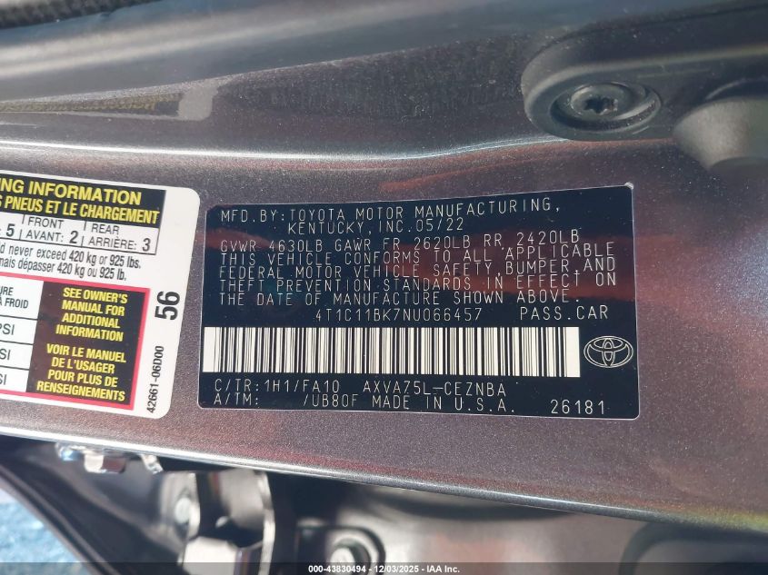 2022 TOYOTA CAMRY 2022 року Бензин, 2.5, Полный привод, vin - 4T1C11BK7NU066457 из США