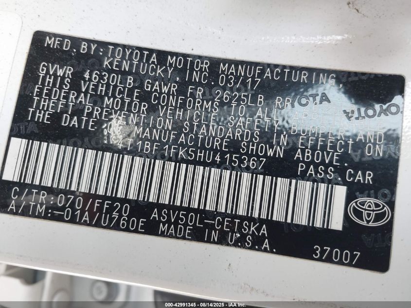 2017 TOYOTA CAMRY LE