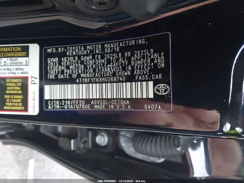 2017 TOYOTA CAMRY LE