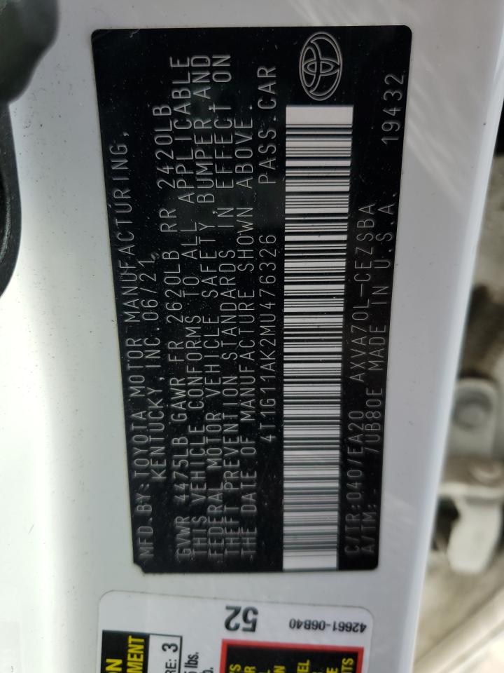 2021 TOYOTA CAMRY 2021 року Бензин, 2.5, , vin - 4T1G11AK2MU476326 из США