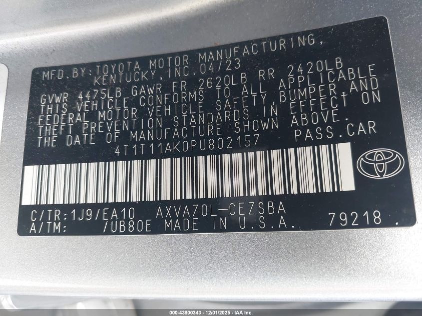 2023 TOYOTA CAMRY 2023 року Бензин, 2.5, Передний привод, vin - 4T1T11AK0PU802157 из США