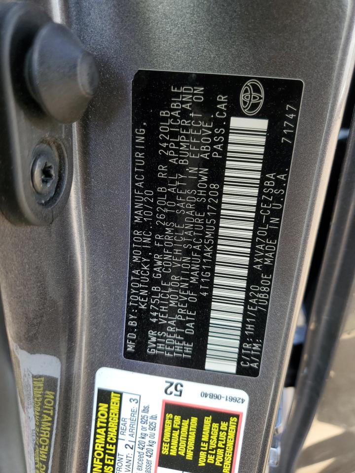 2021 TOYOTA CAMRY 2021 року Бензин, 2.5, , vin - 4T1G11AK5MU517208 из США