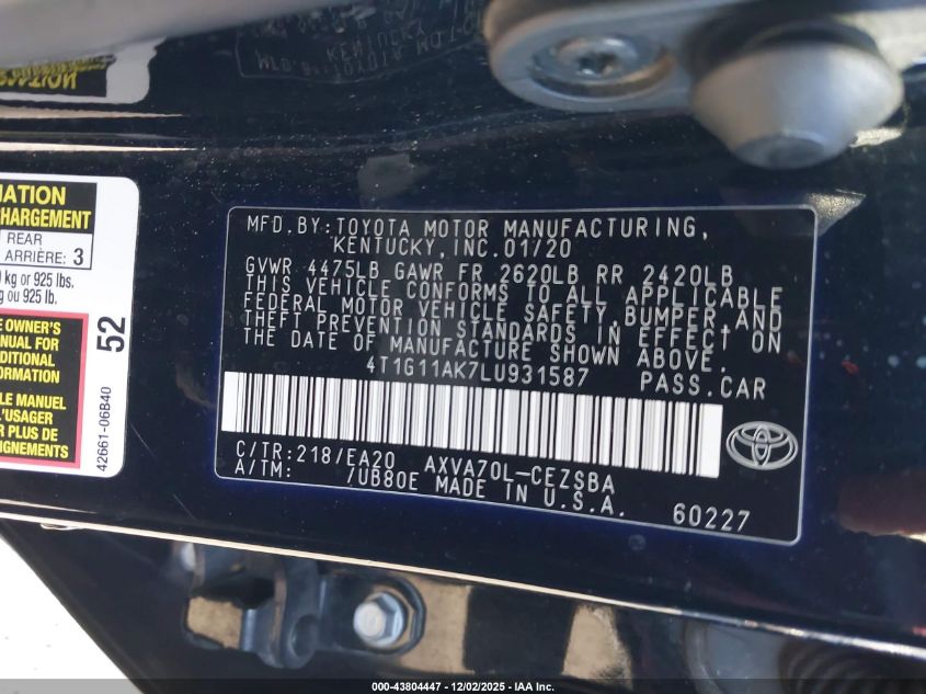 2020 TOYOTA CAMRY LE