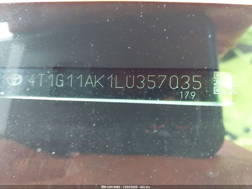 2020 TOYOTA CAMRY 2020 року Бензин, 2.5, Передний привод, vin - 4T1G11AK1LU357035 из США