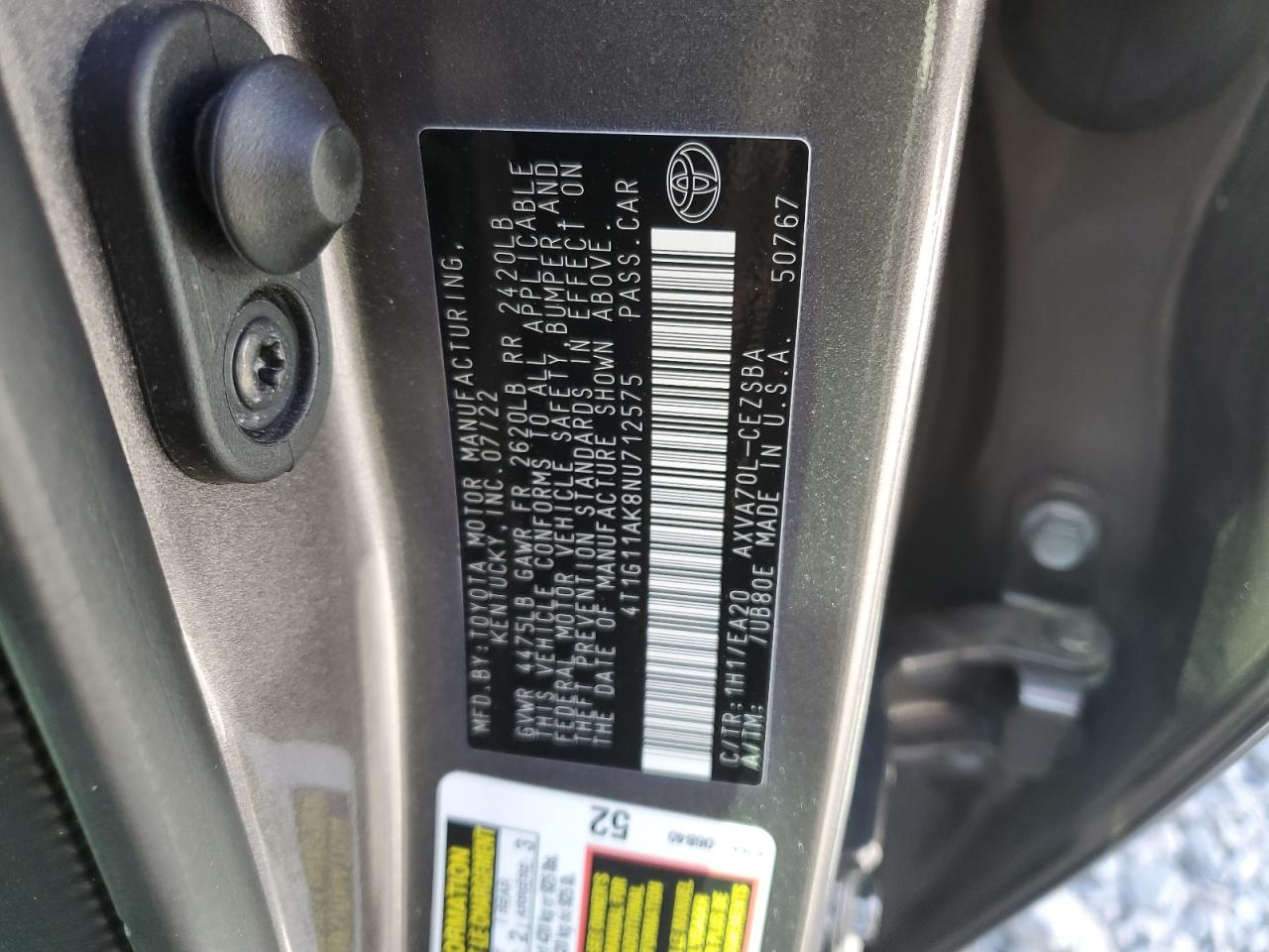 2022 TOYOTA CAMRY 2022 року Бензин, 2.5, , vin - 4T1G11AK8NU712575 из США