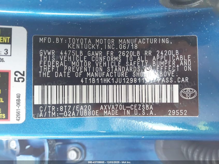 2018 TOYOTA CAMRY 2018 року Бензин, 2.5, Передний привод, vin - 4T1B11HK1JU129811 из США