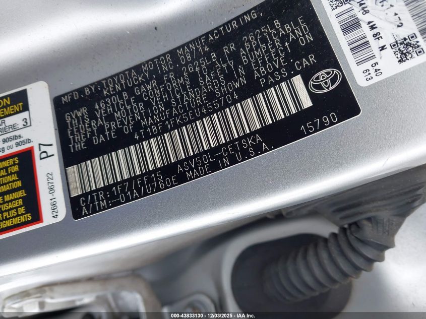 2014 TOYOTA CAMRY 2014 року Бензин, 2.5, Передний привод, vin - 4T1BF1FK5EU455704 из США