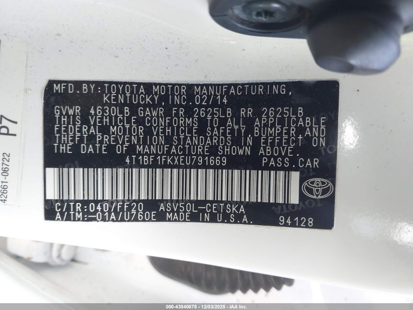 2014 TOYOTA CAMRY 2014 року Бензин, 2.5, Передний привод, vin - 4T1BF1FKXEU791669 из США
