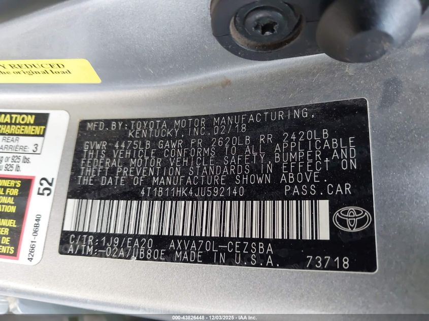 2018 TOYOTA CAMRY 2018 року Бензин, 2.5, Передний привод, vin - 4T1B11HK4JU592140 из США