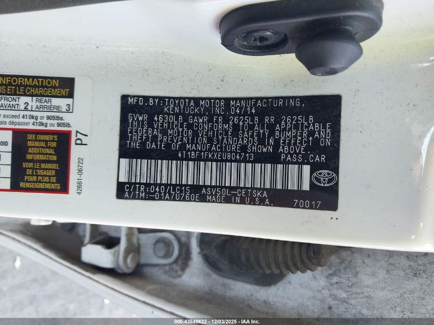 2014 TOYOTA CAMRY 2014 року Бензин, 2.5, Передний привод, vin - 4T1BF1FKXEU804713 из США