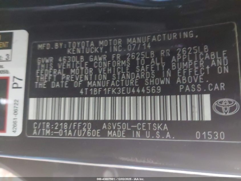 2014 TOYOTA CAMRY 2014 року Бензин, 2.5, Передний привод, vin - 4T1BF1FK3EU444569 из США