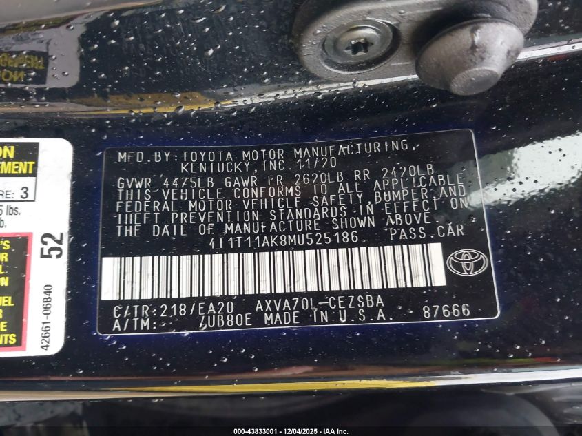 2021 TOYOTA CAMRY 2021 року Бензин, 2.5, Передний привод, vin - 4T1T11AK8MU525186 из США
