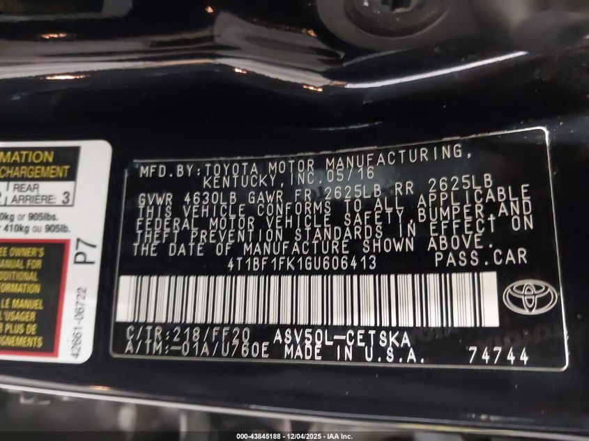 2016 TOYOTA CAMRY 2016 року Бензин, 2.5, Передний привод, vin - 4T1BF1FK1GU606413 из США