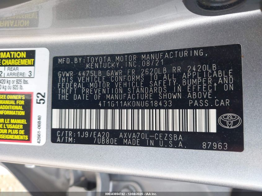 2022 TOYOTA CAMRY 2022 року Бензин, 2.5, Передний привод, vin - 4T1G11AK0NU618433 из США
