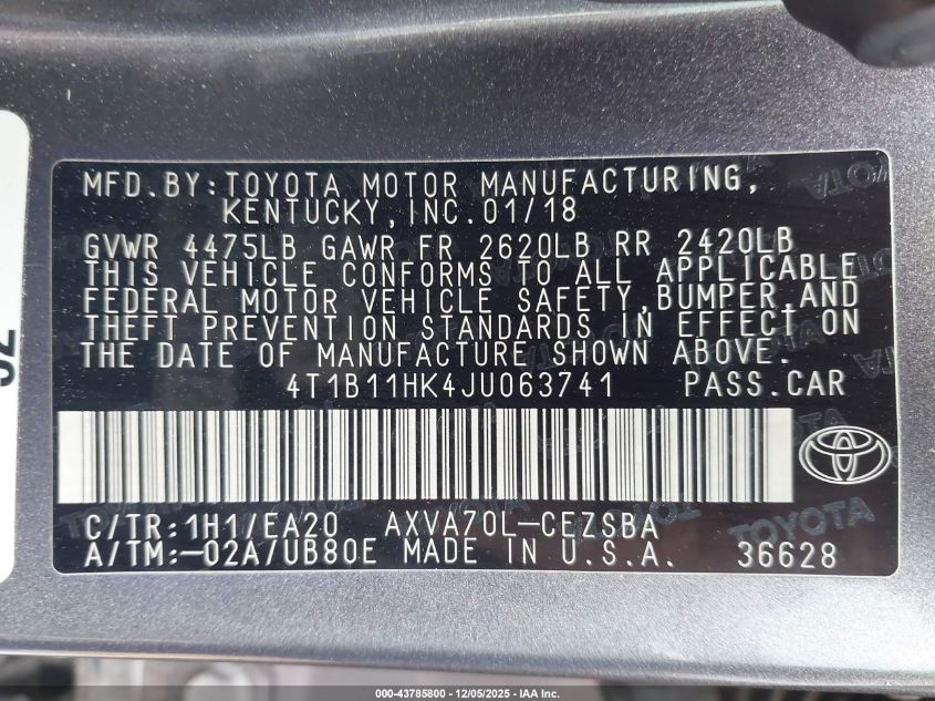 2018 TOYOTA CAMRY L