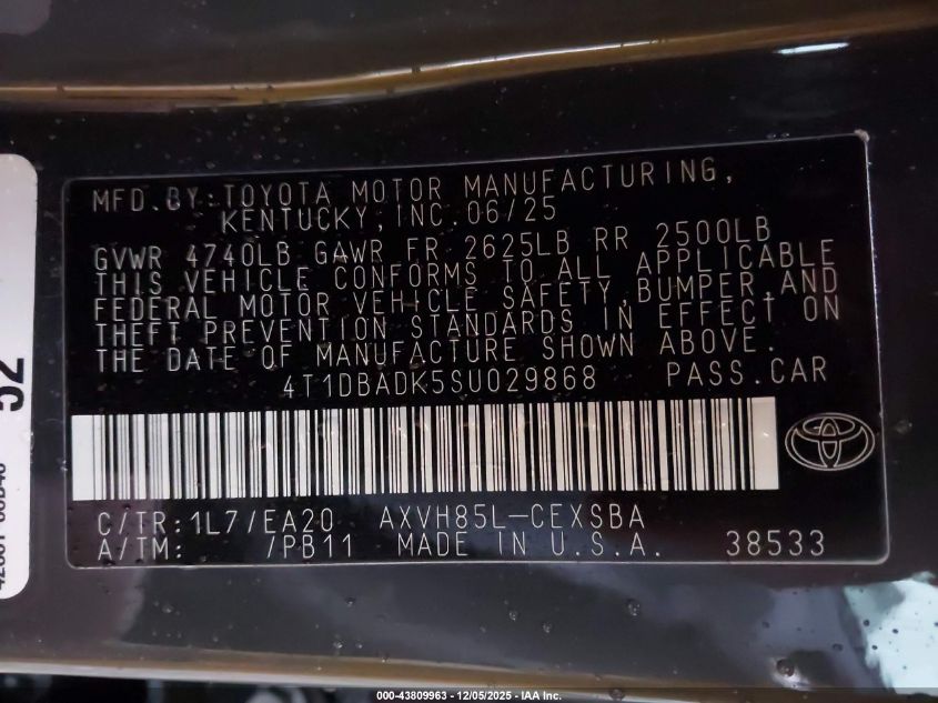 2025 TOYOTA CAMRY 2025 року Гибрид, 2.5, Полный привод, vin - 4T1DBADK5SU029868 из США