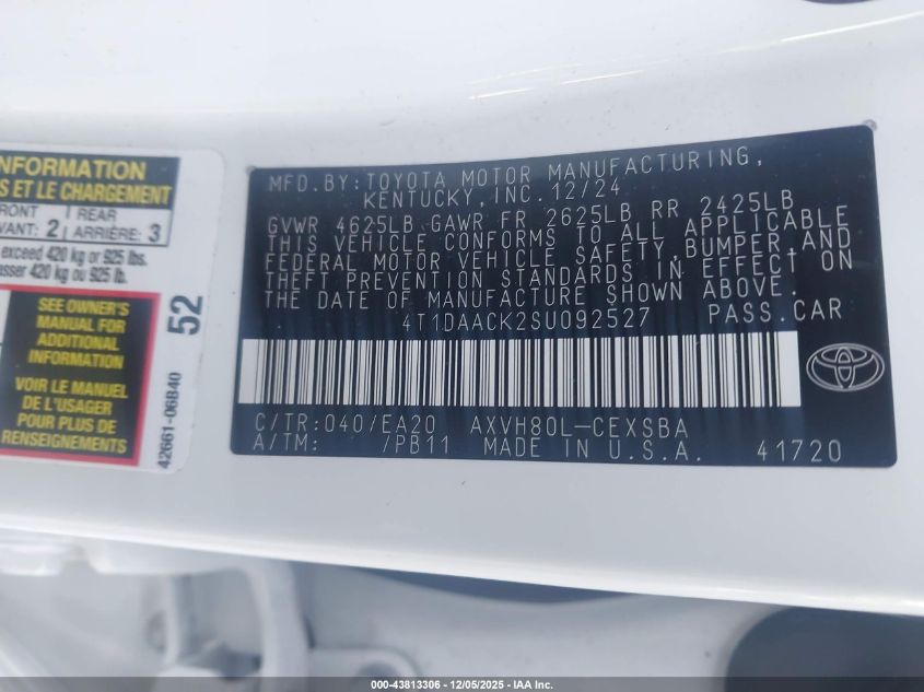 2025 TOYOTA CAMRY 2025 року Гибрид, 2.5, Передний привод, vin - 4T1DAACK2SU092527 из США