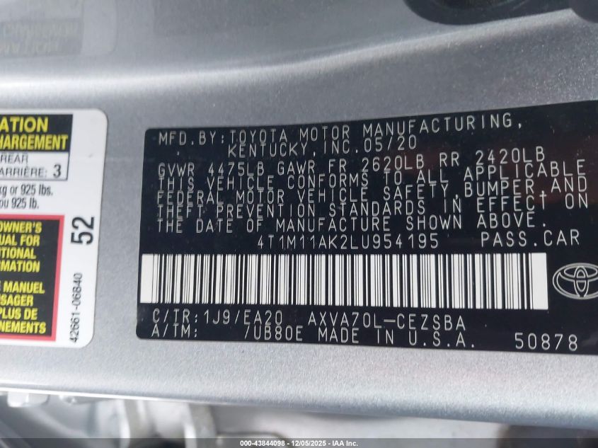 2020 TOYOTA CAMRY 2020 року Бензин, 2.5, Передний привод, vin - 4T1M11AK2LU954195 из США