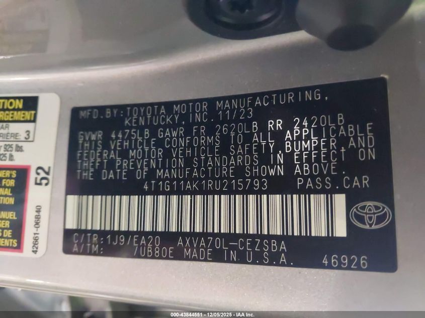 2024 TOYOTA CAMRY 2024 року Бензин, 2.5, Передний привод, vin - 4T1G11AK1RU215793 из США