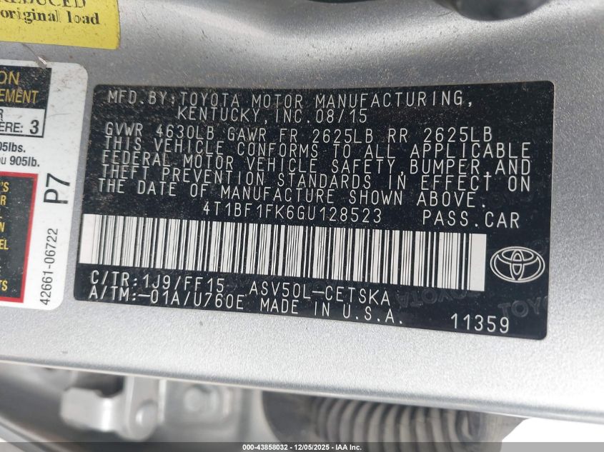 2016 TOYOTA CAMRY 2016 року Бензин, 2.5, Передний привод, vin - 4T1BF1FK6GU128523 из США