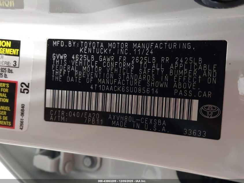 2025 TOYOTA CAMRY 2025 року Гибрид, 2.5, Передний привод, vin - 4T1DAACK6SU085614 из США