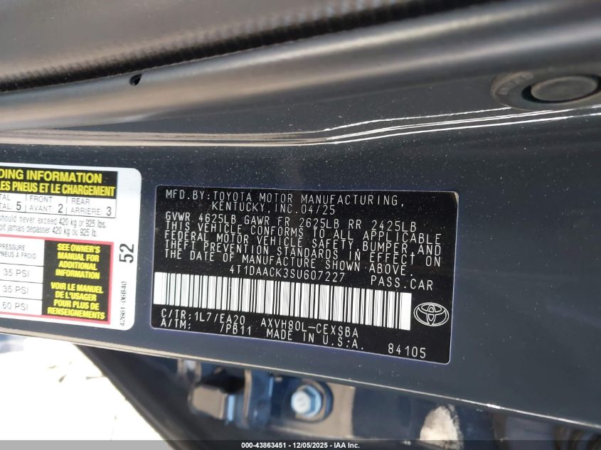 2025 TOYOTA CAMRY 2025 року Гибрид, 2.5, Передний привод, vin - 4T1DAACK3SU607227 из США