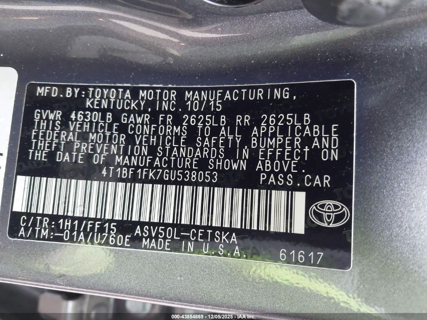 2016 TOYOTA CAMRY 2016 року Бензин, 2.5, Передний привод, vin - 4T1BF1FK7GU538053 из США