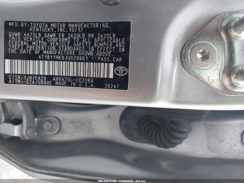 2018 TOYOTA CAMRY L