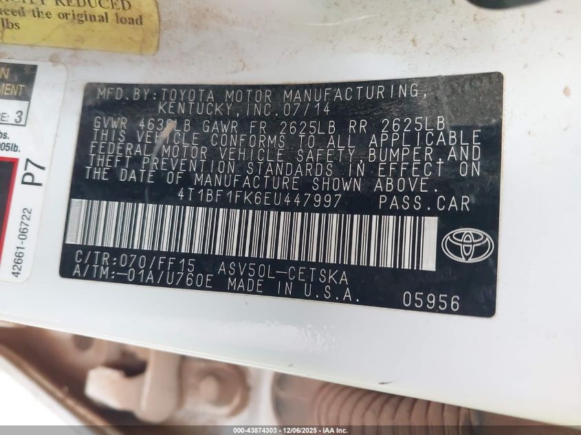 Цвет БелыйЦилиндры 4Привод Передний приводVIN 4T1BF1FK6EU447997Состояние Заводится и едет (проверено)Повреждения Передняя или задняя AutoRIA