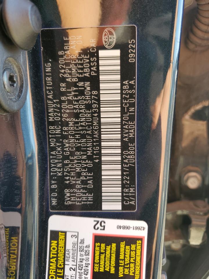 2021 TOYOTA CAMRY 2021 року Бензин, 2.5, , vin - 4T1G11AK6MU439778 из США
