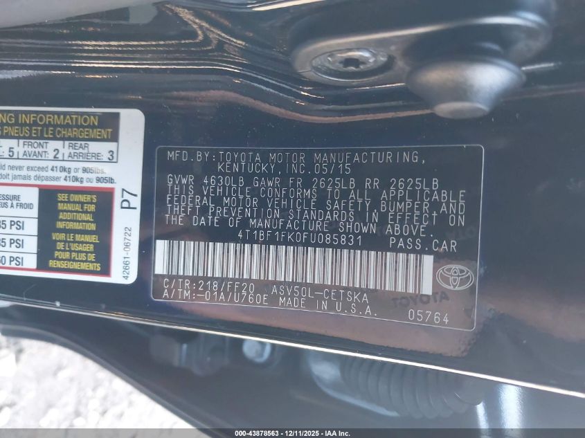 2015 TOYOTA CAMRY 2015 року Бензин, 2.5, Передний привод, vin - 4T1BF1FK0FU085831 из США