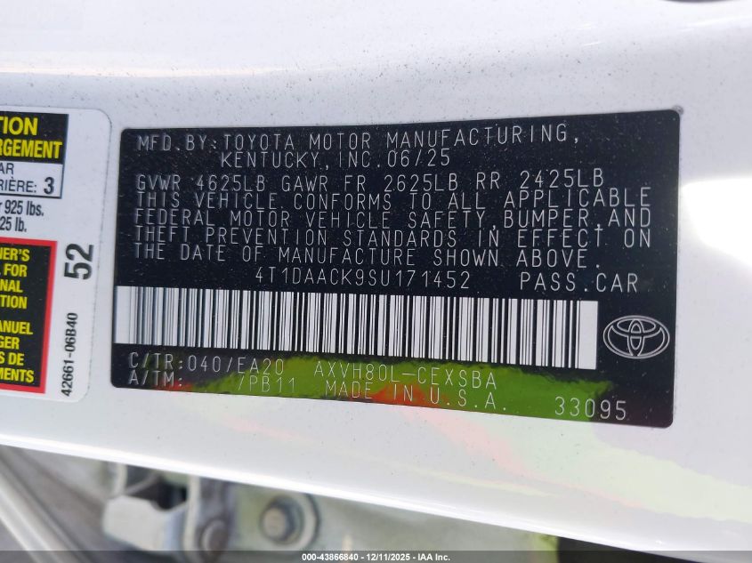 2025 TOYOTA CAMRY 2025 року Гибрид, 2.5, Передний привод, vin - 4T1DAACK9SU171452 из США