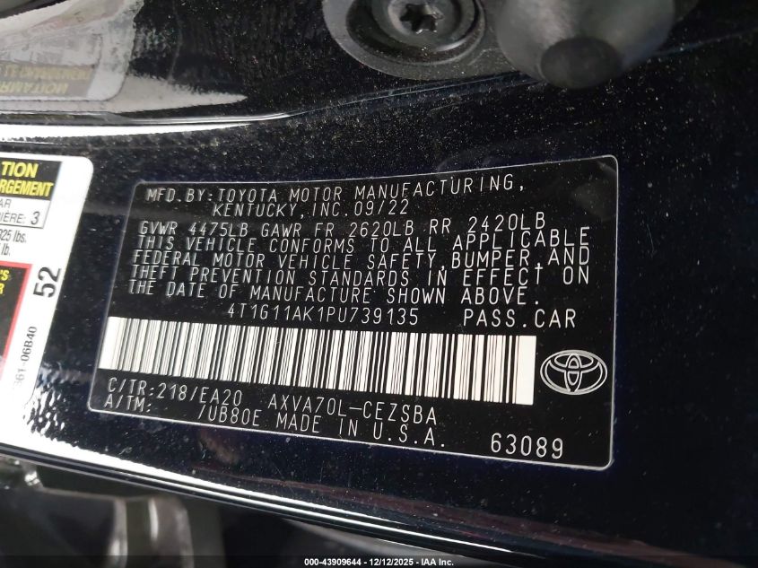 2023 TOYOTA CAMRY 2023 року Бензин, 2.5, Передний привод, vin - 4T1G11AK1PU739135 из США