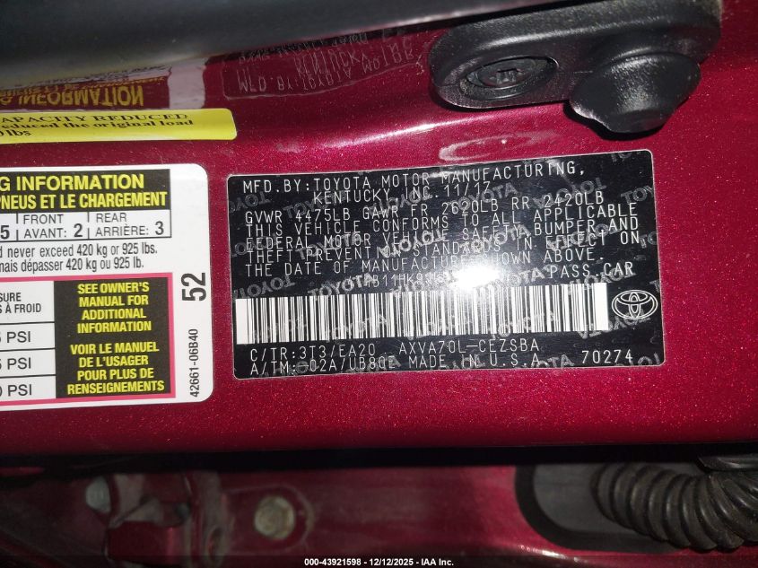 2018 TOYOTA CAMRY 2018 року Бензин, 2.5, Передний привод, vin - 4T1B11HK9JU553365 из США