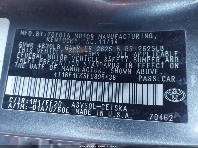 2015 TOYOTA CAMRY 2015 року Бензин, 2.5, Передний привод, vin - 4T1BF1FK5FU895438 из США