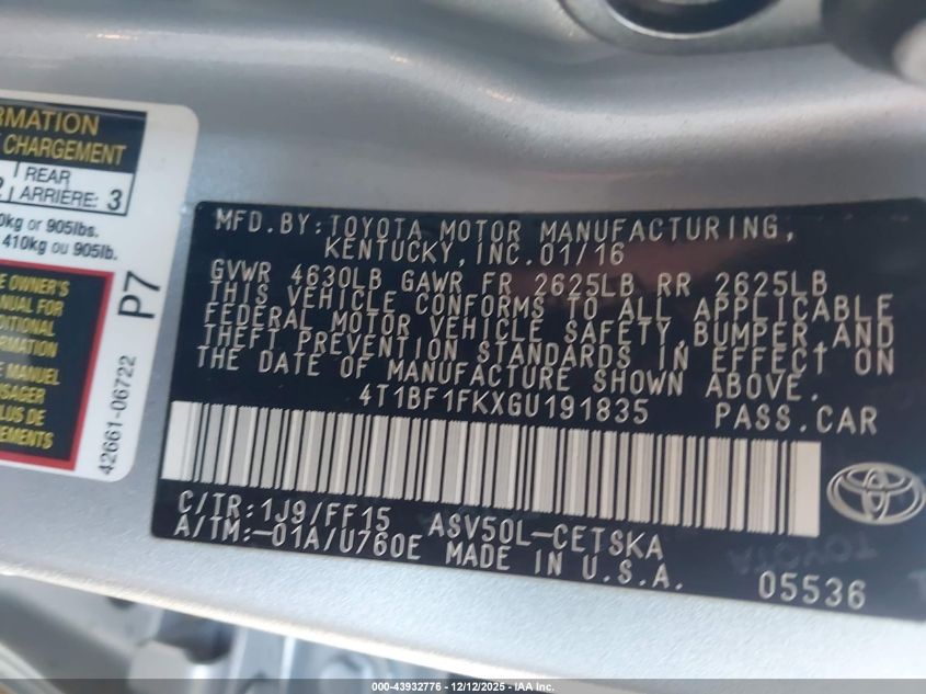 2016 TOYOTA CAMRY XSE