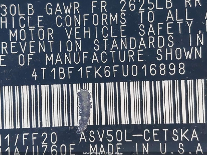 2015 TOYOTA CAMRY 2015 року Бензин, 2.5, Передний привод, vin - 4T1BF1FK6FU016898 из США